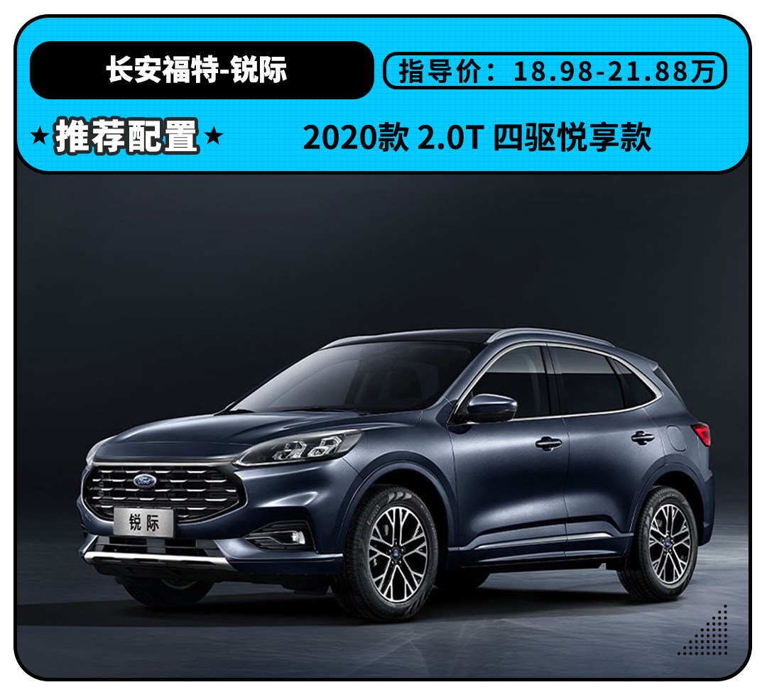 在四驱车型中,个人比较推荐去年年底刚刚上市的福特锐际。车辆首发的三款车型均带有四驱系统,并且整体配置也不低,即便是入门版的2.0T 四驱悦享版也有着不错的配置全面性。而车辆的动力表现自然不用担心,全系标配2.0T发动机最大功率248Ps,匹配一台8AT变速箱,动力表现上对比同级别的RAV4荣放、途岳等都有很大优势。