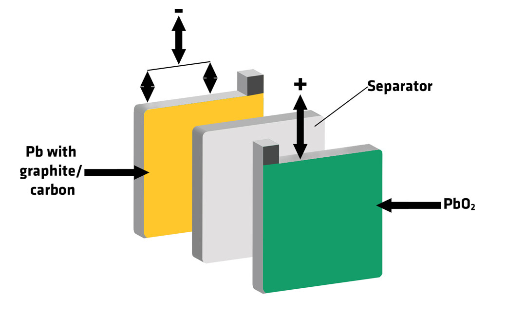 在传统铅酸蓄电池中,极板之间没有压力,所以可以用一些比较硬的合金,但没有纯铅那样好的延展性;此外,纯铅还有另外一个好处就是允许更大的冷启动电流,同时因为它的内阻更小,所以性能会更好。某些厂家还会使用网状铅板的设计,来降低析气效应以及腐蚀。
