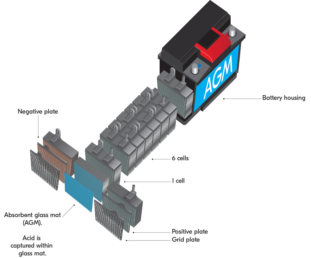 这种电池的一大特点在于铅板的设计,铅板使用网格状设计,优化了电子朝铅板流动的效率,让电流更加有效率地流向单元端子,单元端子之间由熔补焊在一起的整体金属块连接,相对普通铅酸电池的立碑焊,提高了耐久性和传输效率,同时这种电池还具有高容量和深循环的性能,所以这种平板式的AGM电池是针对高性能车很好的解决方案。