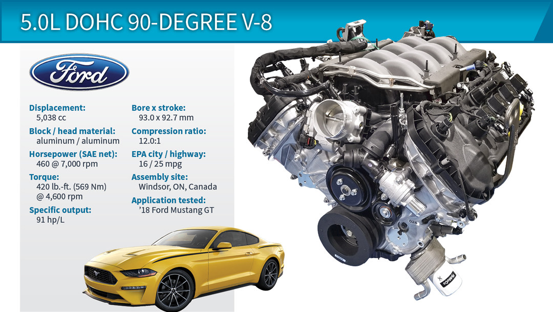 没错,我说的正是Mustang GT,搭载的5.0 V8发动机曾获得2018年沃德十佳发动机的称号,近年来沃德十佳逐渐趋向于小排量涡轮发动机,跟全世界范围内的小排量化不无关系,而这台发动机为什么能力压众多对手,获得十佳殊荣?