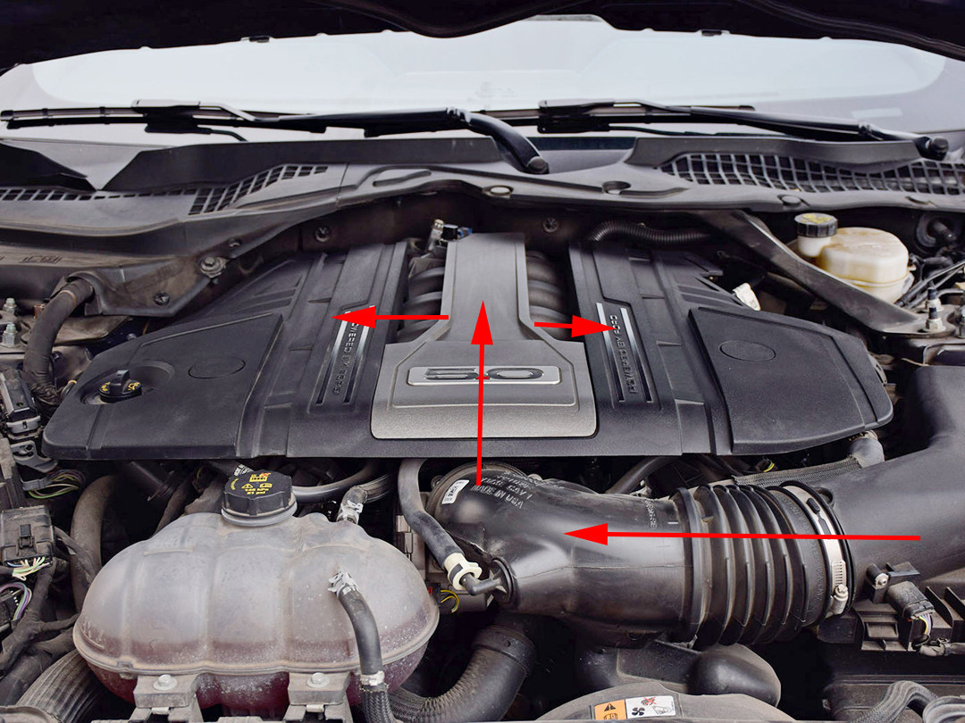 言归正传,这台V8发动机的点火顺序是1-5-4-8-6-3-7-2。从发动机舱看,这台发动机的体积并不小,基本上发动机两侧距离塔顶只有很小的距离。