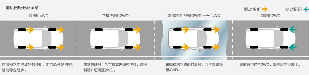 在这套四驱系统上,同样具备了四驱综合管理系统,但是由于该系统最多能够把整车50%的动力传递至有附着力的单侧后轮,在遇上对角车轮离地的交叉轴工况时,从而实现车辆快速高效地脱困。