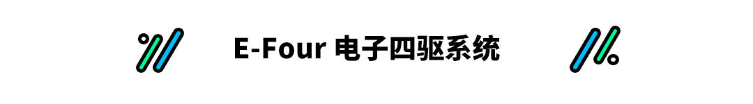 E-Four电子四驱系统,是通过在后桥增加一个电动机实现电动四驱的功能,可以自动选择对应的四驱模式,自动化程度更高,使用起来也更为简单,同时最多能够按照20:80的比例分配前后轴扭矩。