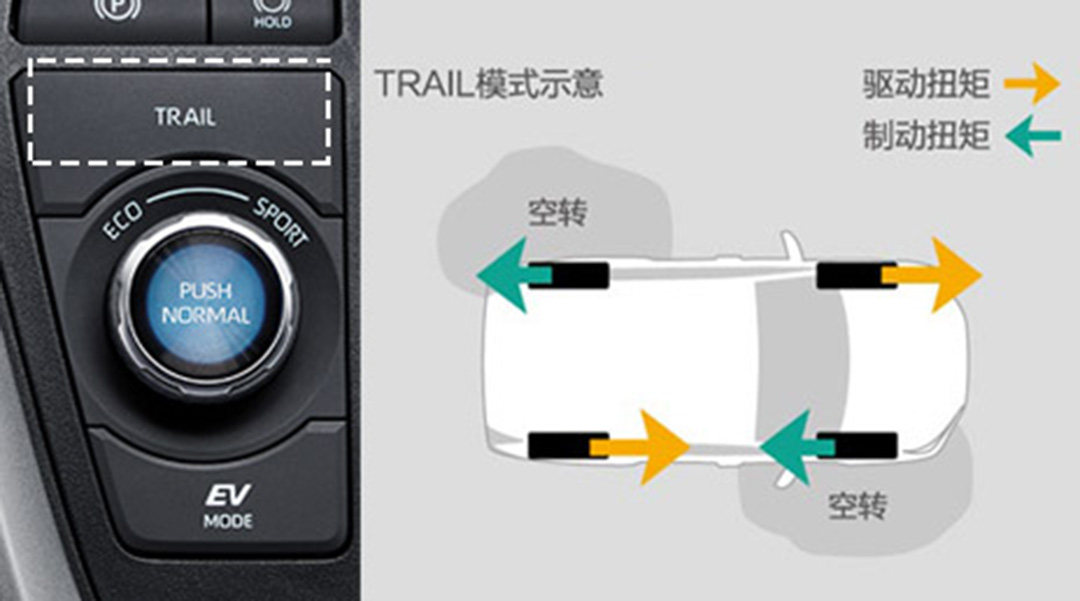但是,这并不就意味着该系统的越野性能会减弱,其实在这套系统中有一套计算能力更强的电控系统。在该车上有一个TRAIL模式,其实可以当作是一键越野模式,也就是很多人说的“傻瓜模式”。在启动该模式后,四驱系统会积极地对打滑或空转车轮实施制动,从而把动力传到有附着力的车轮,可以更好的提升车辆的越野性能。