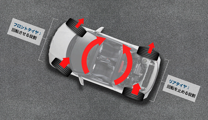 从车身角度看,当你在转动方向盘改变车轮角度从而改变车身行驶方向时,我们肉眼看到的是内侧车轮变慢外侧变快,实际上前后轮也在博弈。设想一下,转弯时稳住方向盘,为什么车身不会过度跑偏,而是维持既定角度转弯?因为前轮转弯的时候,后轮也跟着产生了一个转弯力,让车身保持力矩平衡。