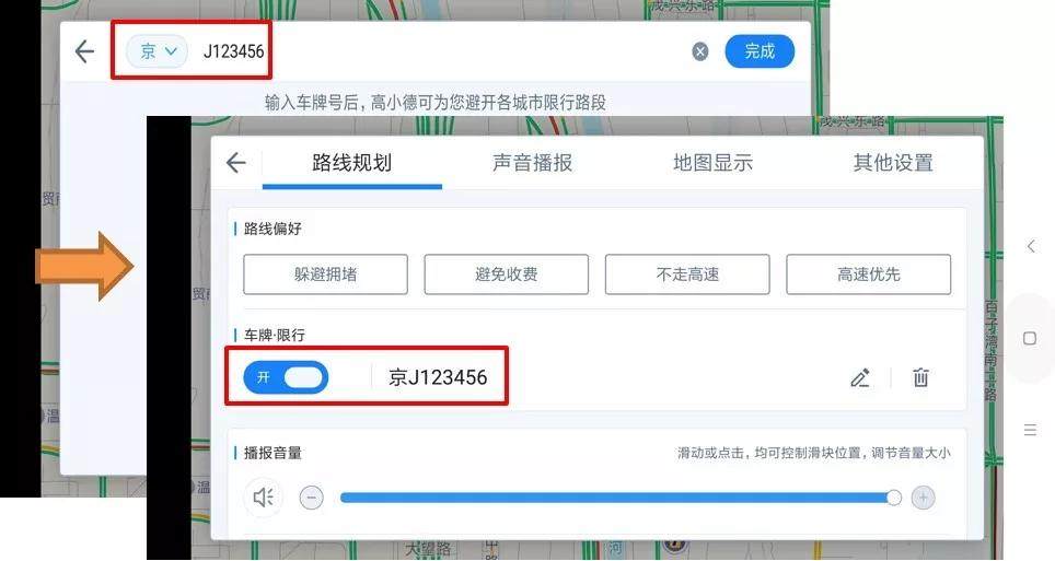 针对车主遗忘限行日而将车开上路的问题,高德地图车机版中就提供了车牌限行功能。