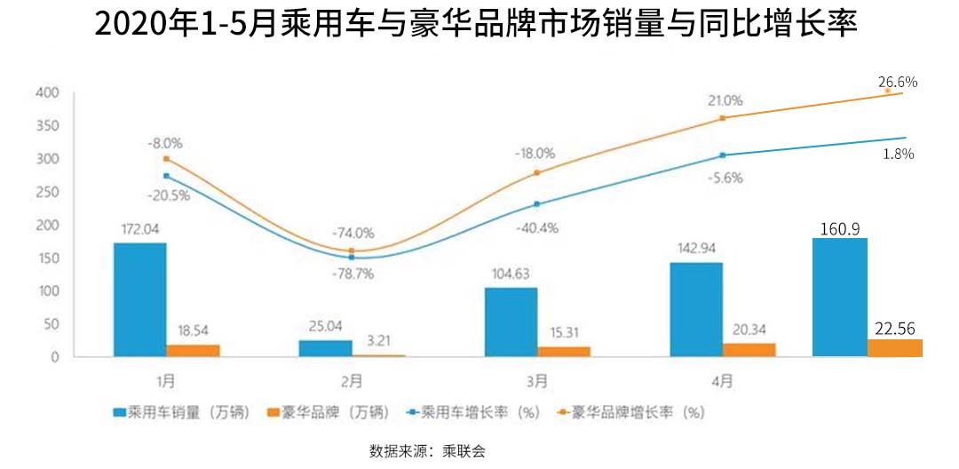 在刚刚过去的5月份,整个乘用车市场迎来22个月后的首次正增长,较去年同期增长1.8%,但考虑到疫情旗舰的需求抑制,这样的表现其实并不让人满意,不过令人意外的是,豪华品牌却出现26.6%的增幅,连续两月增长超20%。