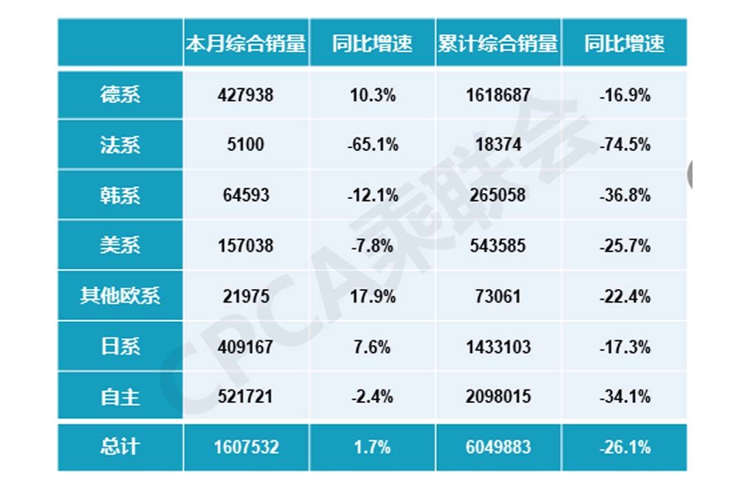 来自乘联会的相关数据显示,今年5月份,德系、日系、其它欧系等合资品牌,都出现了正增长;但自主品牌仍然下降了2.4%,前五月累计下滑达34.1%,两项表现均低于整体市场。
