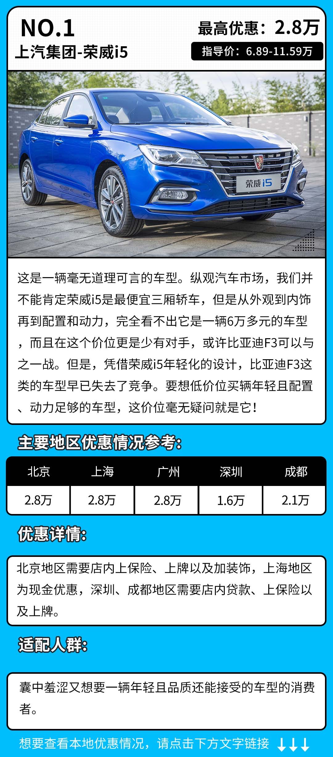 虽然说价格是价值的一种体现,但是很多车型的价格坚挺产品力却很一般,并没有达到车辆所要体现的价值。而以上五款车型的价格完全体现出了该车的价值,甚至是价值大于价格的,比如荣威i5的“超值”、难得优惠的雷凌以及高性价比的三菱欧蓝德(最便宜的紧凑型四驱SUV)等等。我们买东西的时候常常看到的都是大优惠,总想着优惠越大越好。其实,很多时候只要认准所要购买的产品优惠值得购买,即使优惠不高,也是可以拿下的!