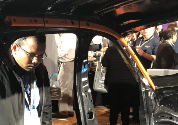 锐际A柱分为内外两部分,但是为了让人直观的看到两种材料,官方就在结构图上解刨了一下。更有意思的是,A柱内侧用的不是钢板而是钢管,这根钢管一直从A柱接到C柱子,这根钢管用料可不一般,它是冷轧马氏体钢,强度达到了1700Mpa(应该指拉伸强度),这性能绝对是30万价位以内的王者。