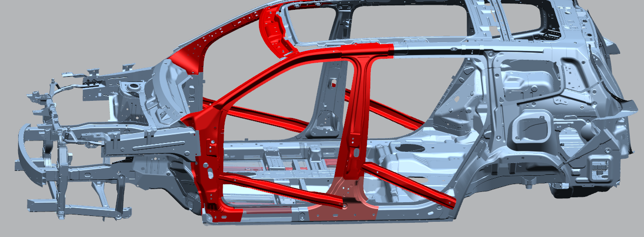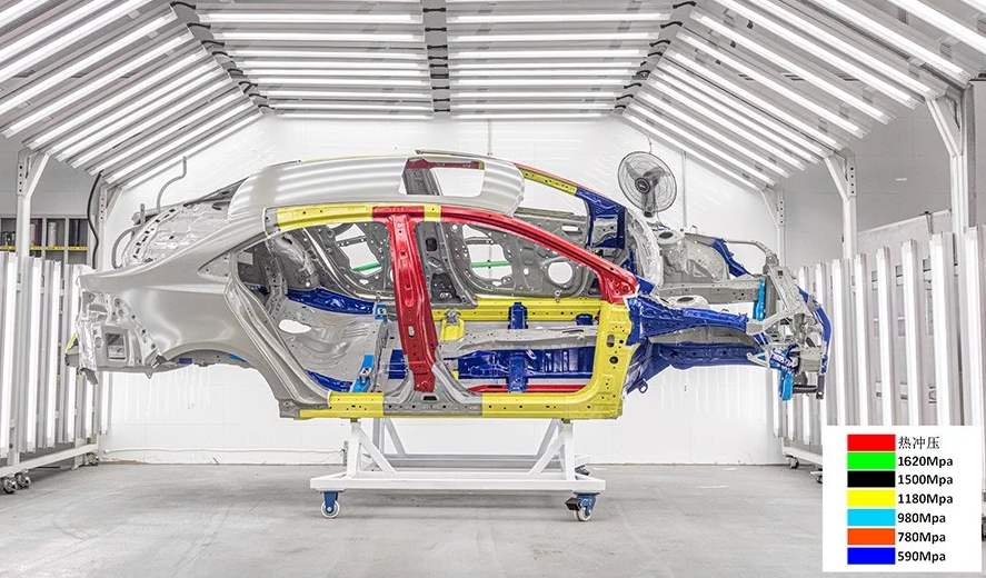 有人会好奇,大指挥官是怎么做到这个成绩的,首先是车身结构设计合理,其次钢材性能很好,前立柱、A柱、B柱以及车门加强筋(图片标红区域)都用了强度1500Mpa的钢材,而且是屈服强度。