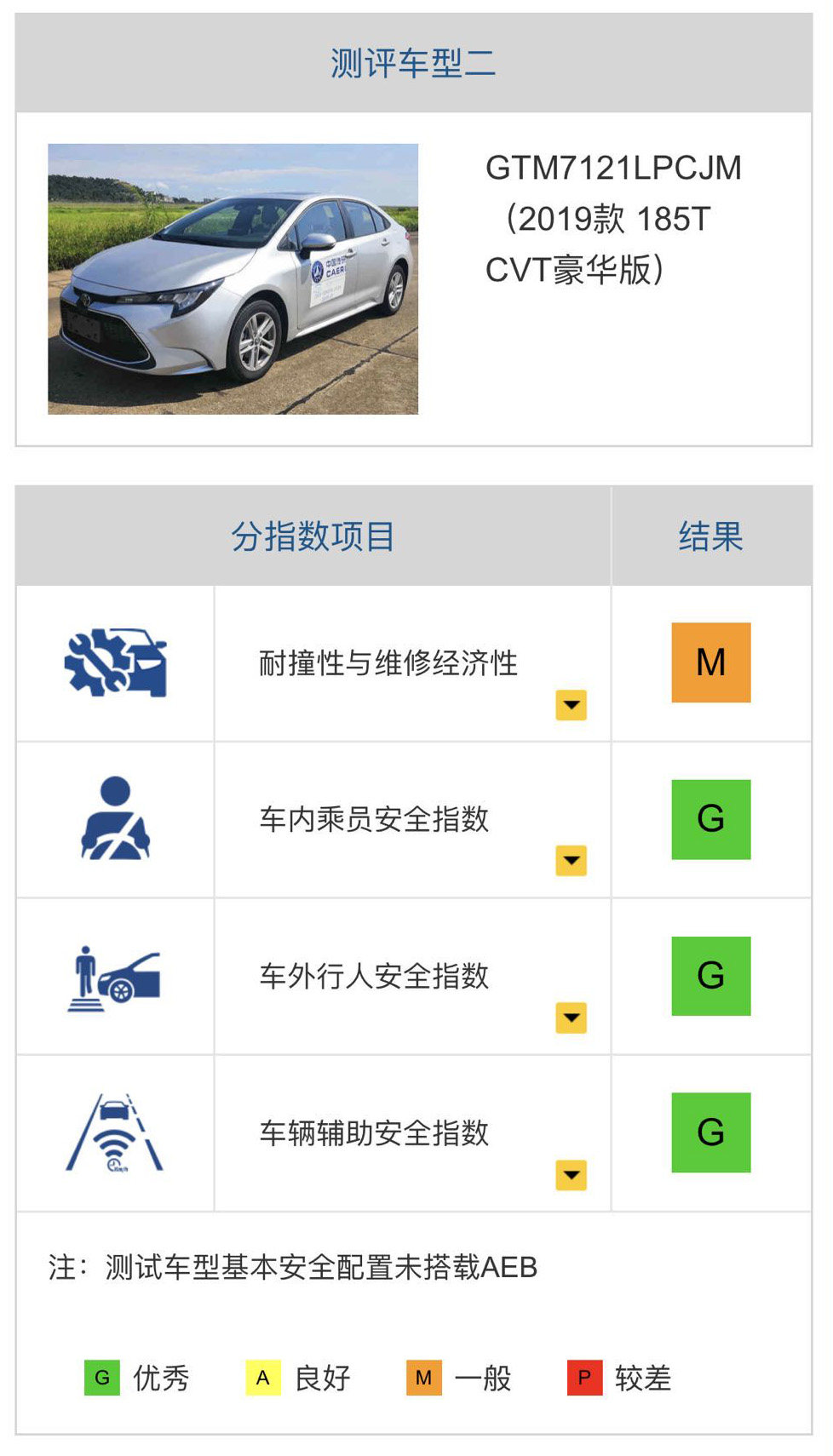 从中保研的测试成绩看,雷凌车身结构设计很好,小碰撞车身受损程度小维修相对便宜,大碰撞对乘客的保护又足够好,车身强度高。