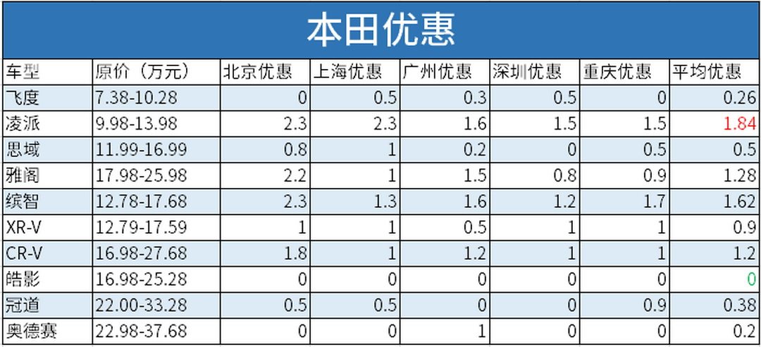 本田车型优惠幅度也不算大,比丰田稍微多一点优惠。