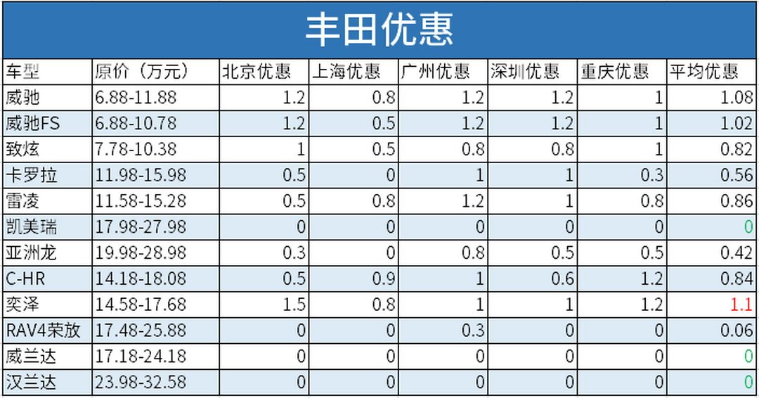 优惠较大的车型要么像威驰这类还不是TNGA架构产物的老产品,还有就是C-HR、奕泽这种空间小,不适合中国国情的车型。