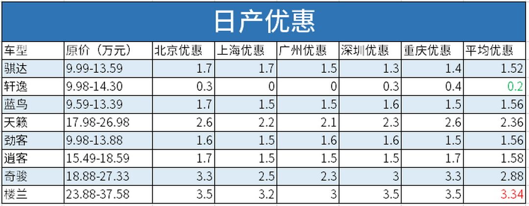 日系三大品牌中,日产的优惠幅度算比较大的。