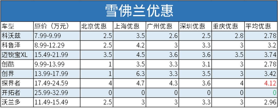 雪佛兰优惠最高的两款车探界者和迈锐宝XL两款车,市场终端优惠近4万。这两款车虽然上市有一定的年头,但是优惠完后,迈锐宝XL的2.0T入门版裸车也就16万上下,而探界者起步价才13.5万,要知道,这是一款合资的中型SUV,这价格你只能买到本田缤智。