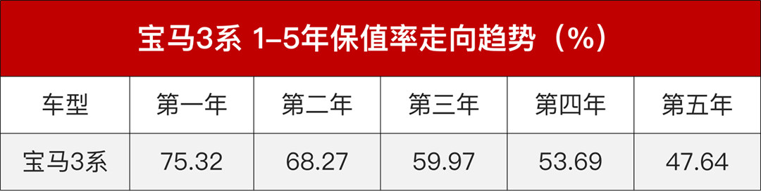 值得注意的是,品牌形象深入人心、市场保有量高的宝马3系,新车保值率表现一直很不错。根据统计数据,宝马3系前2年的保值率挺好,但从第三年开始,保值率下滑比较快,相比同级奔驰C 级、奥迪A 4L车型,略处于下风。