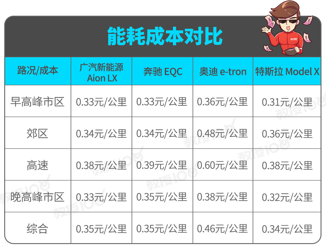 数据看着有些虚无缥缈,但将其换算成能耗成本看会更直观一些。以工业用电1.6元/度的价格来算,奔驰EQC在早高峰市区每公里电耗成本大概为0.33元,比车重相差不多的传统燃油中型SUV低得不止一星半点。