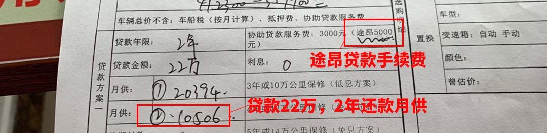 如果你是贷款购车,需要5000元的贷款手续费,令买买君不解的是,上汽大众其他车型手续费都是3000元,唯独途昂需要5000元。目前店内可提供15万2年零息贷款,如果按贷款22万2年期还款,月供约10206元。