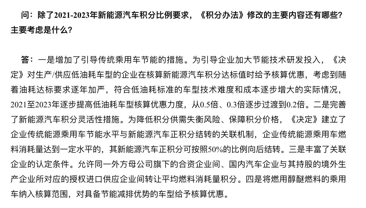意思就说,如果你生产低油耗汽车,我就降低你新能源车的考核标准,但低油耗车型的标准是什么?