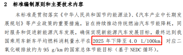 在《乘用车燃料消耗量评价方法及指标》(GB 27999)写很清楚,只要你的车整备质量与对应的油耗低于设定的标准,就属于低油耗车型。如果你有兴趣看看目前在售车型重量和油耗,那么答案显而易见,低油耗车指的就是混合动力,只不过没有直接点名。