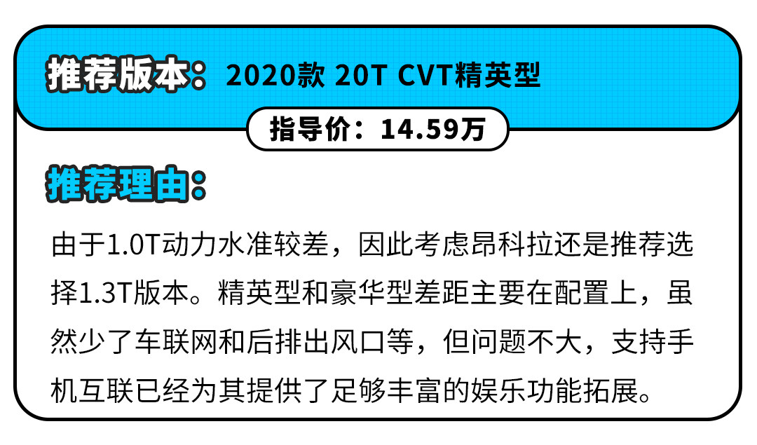 但在市场表现上来说昂科拉的表现并不出色,很大原因出在这款动力总成上,1.0T+6AT和1.3T+CVT两种动力总成均为三缸发动机,既英朗同款动力总成。其实就日常驾驶的动力表现和平顺性还是在可接受范围内,但“三缸机”的标签还是大部分消费者心中的疙瘩,三缸机的市场接受度还是不及主流的四缸发动机。