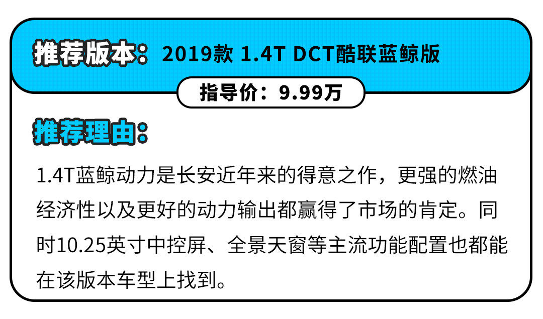 而长安CS35 PLUS车型上的1.4T发动机,就是蓝鲸NE动力平台的首款产品。发动机采用了350bar高压燃油直喷、可变排量机油泵、双VVT可变气门正时等技术,且发动机热效率也能够达到38%,无论是燃油经济性还是动力输出上对比同级别很多1.5L自吸发动机都要优秀不少。如果实在觉得1.4T动力定价偏高,1.6L自吸版车型也同样值得一看,虽然动力对比1.4T发动机会偏弱,但这款发动机在长安旗下早已是非常成熟的产品,匹配的也是可靠性非常强的爱信6AT变速箱。