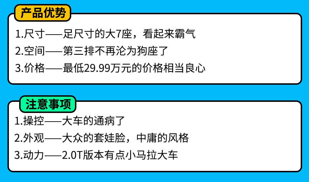 买买君的观点也正是基于此,如果对于7座有刚需的,不妨留意这些车型;但如果并不是真的需要的话,还是选择5座车型更好,没别的原因,普遍来讲,7座车型的第三排永远是不够用的。