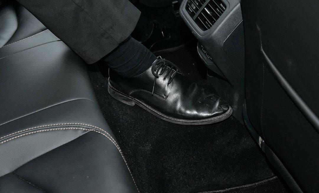 对于坐在第二排中间座椅的乘客来说,放脚是个技术活,如果还是一个穿着套装的女性乘客,那么你可以通过她那狰狞的面孔,感受到她那无处安放的大长腿是一种多么痛的“累赘”。
