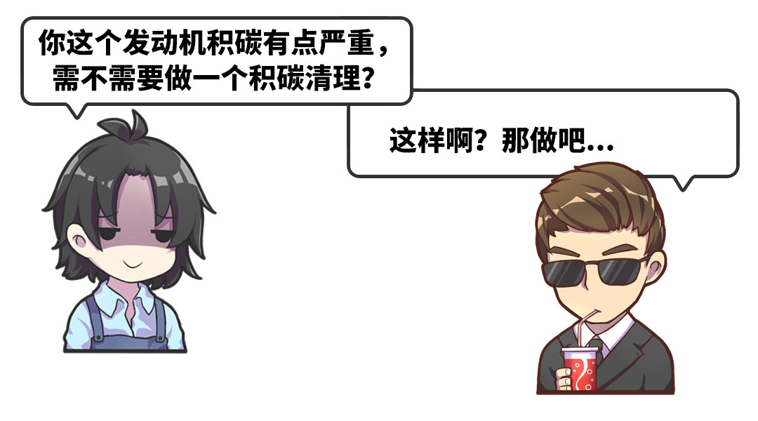 我们先来举一个简单的例子,车辆每次保养机油和机滤都是要换的,但这类有关发动机的保养内容就容易被业务顾问绑定一些发动机其他不太必要的保养项目,例如发动机清积碳等。当然买买君并不是说清理积碳是不必要的项目,积碳确实会对发动机燃烧销量、油耗、排放等方面带来影响。