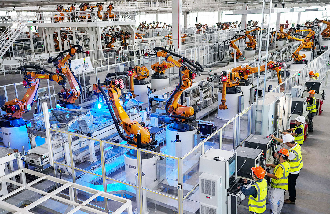 工厂设备都是按照最先进的要求进行装备,包括世界领先的全自动冲压生产线,冲压设备采购自德国舒勒;车身车间设备采购自德国库卡和日本发那科等,按计划,工厂全面达产后每分钟能产1台车。