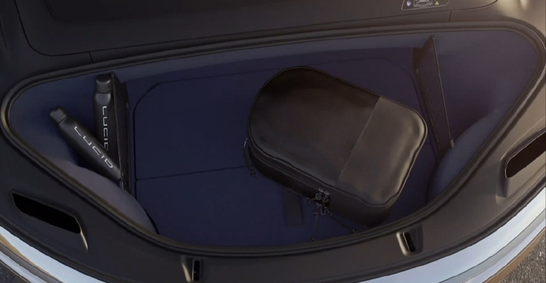得益于更加紧凑小巧的电动机设计以及空间优化,Lucid Air车头的前备箱容积非常可观,已经达到280L,并且前备箱还做了两层扩展设计,这也是目前前备箱容积最大的电动轿车。