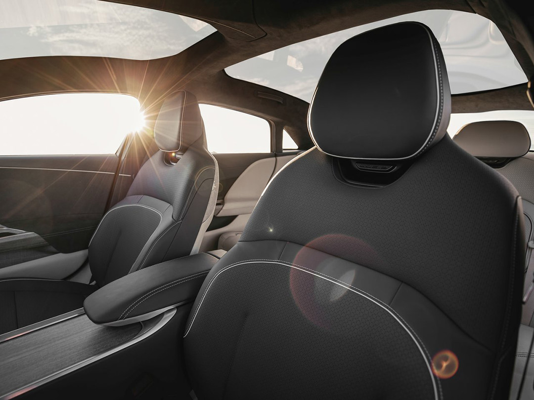 有趣的是Lucid Air还配了一块超大尺寸的天幕玻璃车顶,除了B柱上沿的加强筋,整个车顶几乎被玻璃覆盖,视觉上有不错的享受,车内采光性也更好,只是夏天车内可能会过度闷热,有着相似设计的车型都有同样的问题存在。