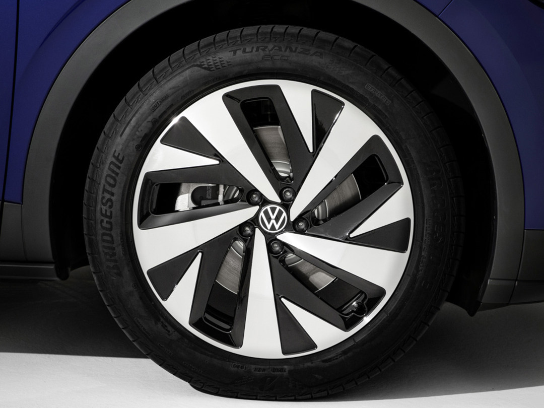 轮圈的造型考虑到了低风阻的设计需求,中国版ID.4也将对车身加长60mm,并且前后车标支持发光,整车风阻系数也只为0.28Cd。