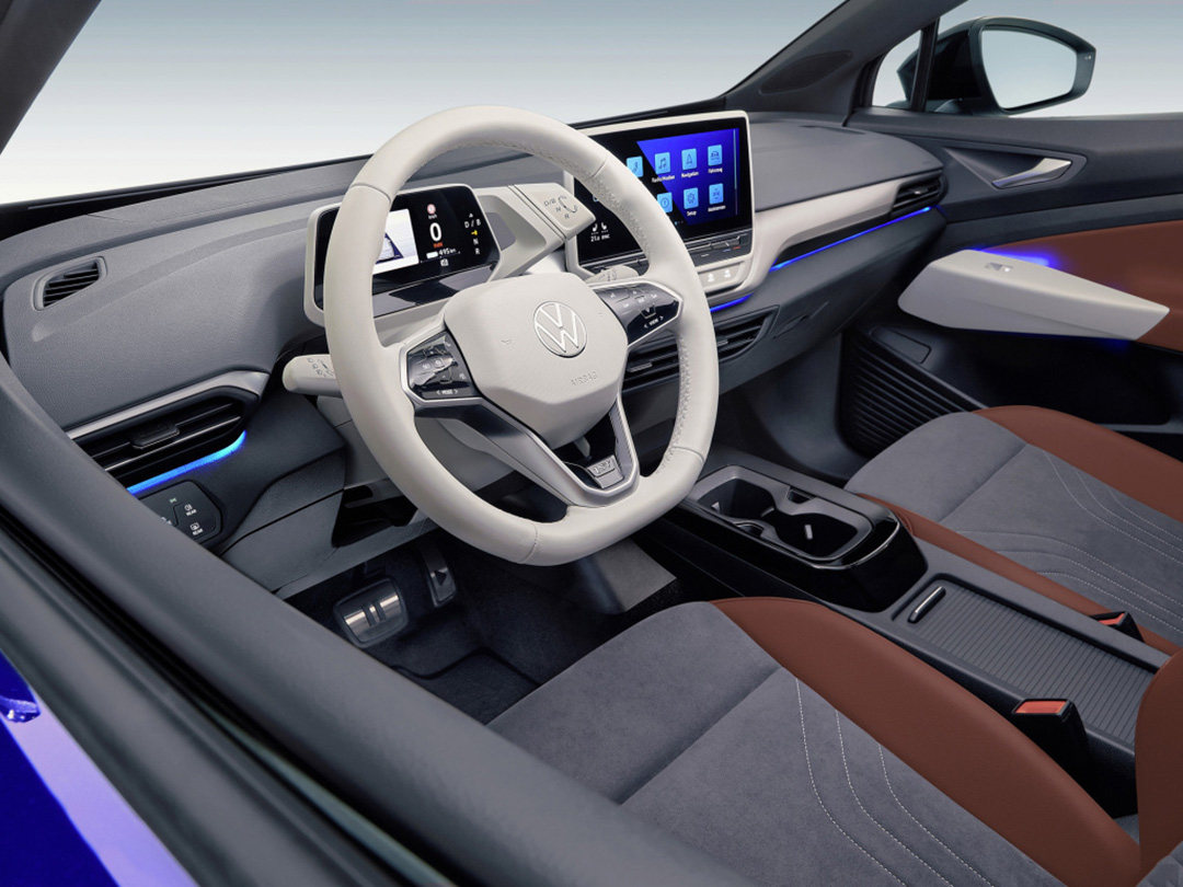 虽然ID.4的外观让大家看到大众创新的魄力,但是内饰依旧是大众无法大刀阔斧做激进设计的据点,相比其他纯电产品大屏幕、多屏幕、极简、科技感等多管齐下的前沿做法,大众依旧需要考虑受众的平衡,因此整个驾驶舱虽然经过重新设计,但从空调出风口、中控台造型等处依旧会让我们感到熟悉。