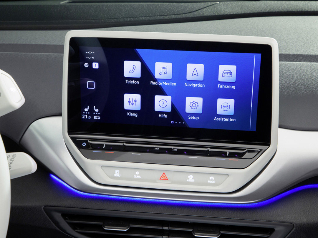 12英寸的触摸中控屏基本集成了车内功能的设置,全新的车机系统和交互UI跟燃油车有较大的不同。不过大众此前已经对整套智能车机进行重新开发,新一代车机软件由于开发进度受阻,所以部分功能还未能使用,像Carplay手机连接等功能得等到明年才能开放。