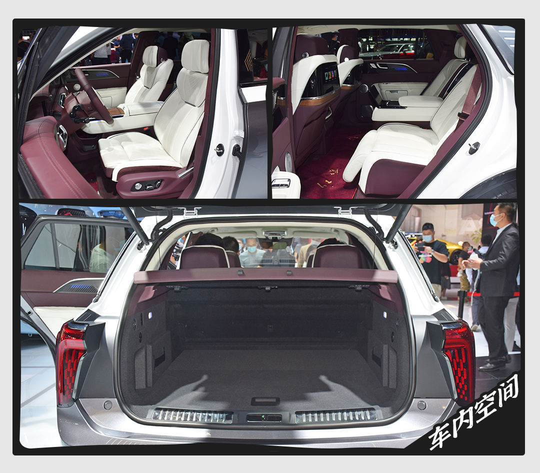 除此之外后排还提供了两块娱乐屏,直接内嵌在前排座椅背部,与座椅融为一体,整体美感更佳。新车将提供四座、六座和七座三种空间布局,并有21英寸和22英寸两种轮毂尺寸可选。