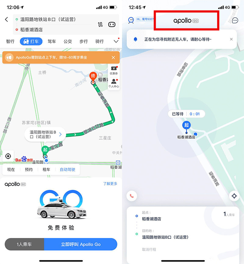 那么,如何才能叫到一辆无人出租车呢?当前百度Apollo GO无人出租车呼叫方式主要有两种,一是通过百度地图,二是通过百度Apollo GO APP软件。