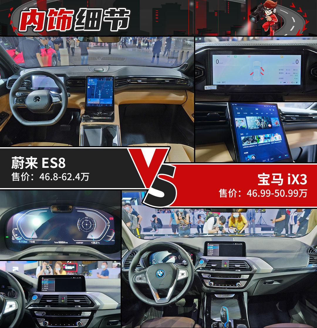 过去我们一直习惯把合资车跟合资车比,国产车跟国产车比,尤其高端车型几乎是清一色的合资车天下。现在自主品牌高端车型卖得不错,且认可度很高的蔚来ES8(46.8万起)跟宝马首款国产的纯电iX3售价相仿,前者自主高端代表,后者老牌高端纯电新秀,如果拿它们对比,孰强孰弱呢?
