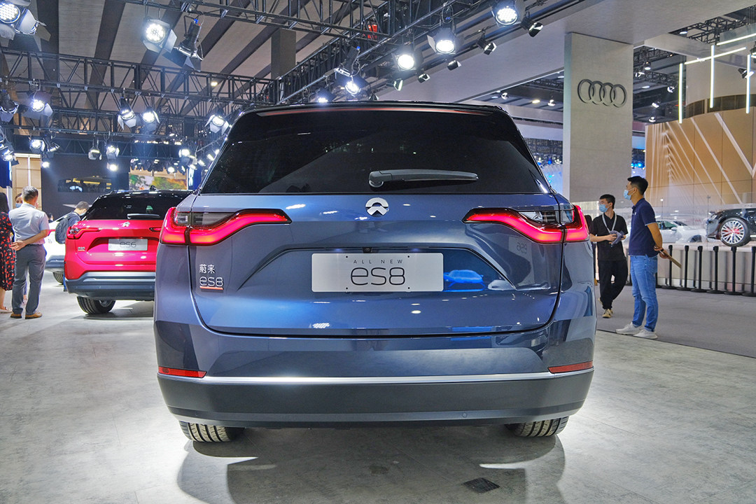 蔚来ES8的车尾一如既往的简洁,通过对天际线高位刹车灯和心跳式尾灯的点缀,在夜间点亮后辨识度很高,也呈现出电动车强烈的科技感。底部护板没有过多装饰,黑色包围也采用极简设计,尾门则支持电动开启。