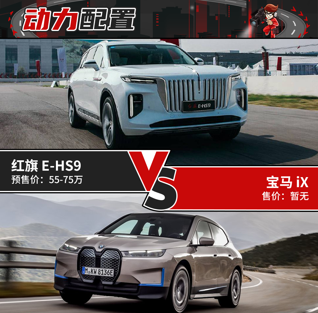 红旗E-HS9代表了当前红旗品牌的旗舰级SUV,预售价在55-75万元,并将在12月4日上市。宝马iX虽然定位中大型SUV,但未来的产品定价或与红旗E-SH9有部分重叠,这两台代表了两个品牌最新高度的车型,它们到底有何过人之处?