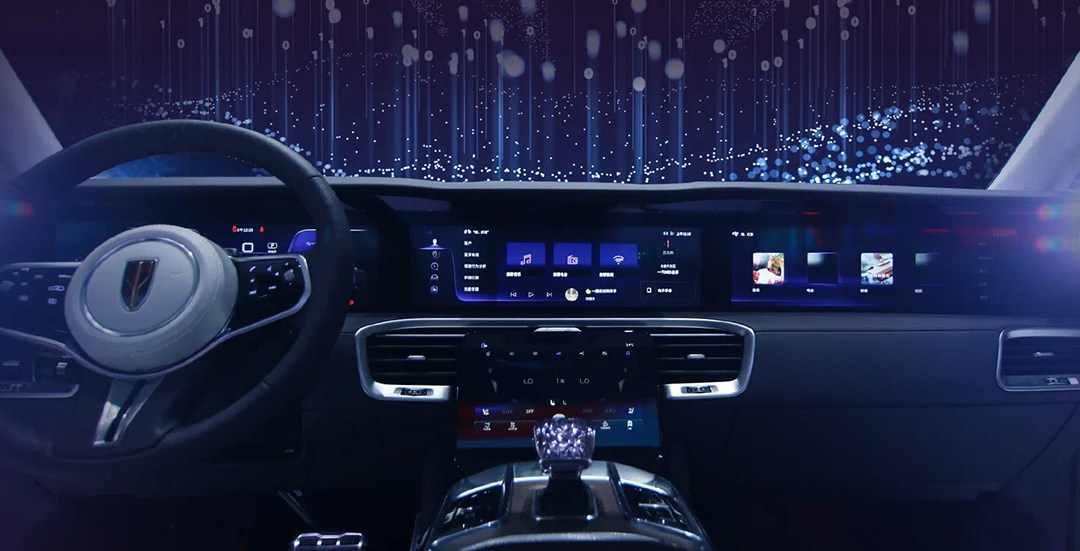 红旗E-HS9还搭载了增强型AR-HUD抬头显示系统,通过技术创新使图像显示区域更大,投影画面可达44英寸,投影距离可达7.5米,能将导航、辅助驾驶信息与实际道路完美重合,提高行驶中的专注力和安全。