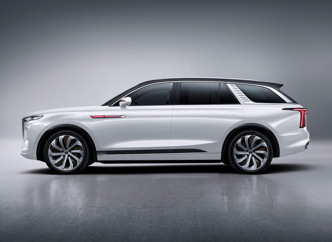 红旗E-HS9从车头刻画出来的腰线,直接贯穿侧标和隐藏式门把手,最后在车尾收笔,体现了中国经典美学中的“气韵生动”之感,饱满加曲面的身形设计,让车侧姿态尤为流畅柔美。