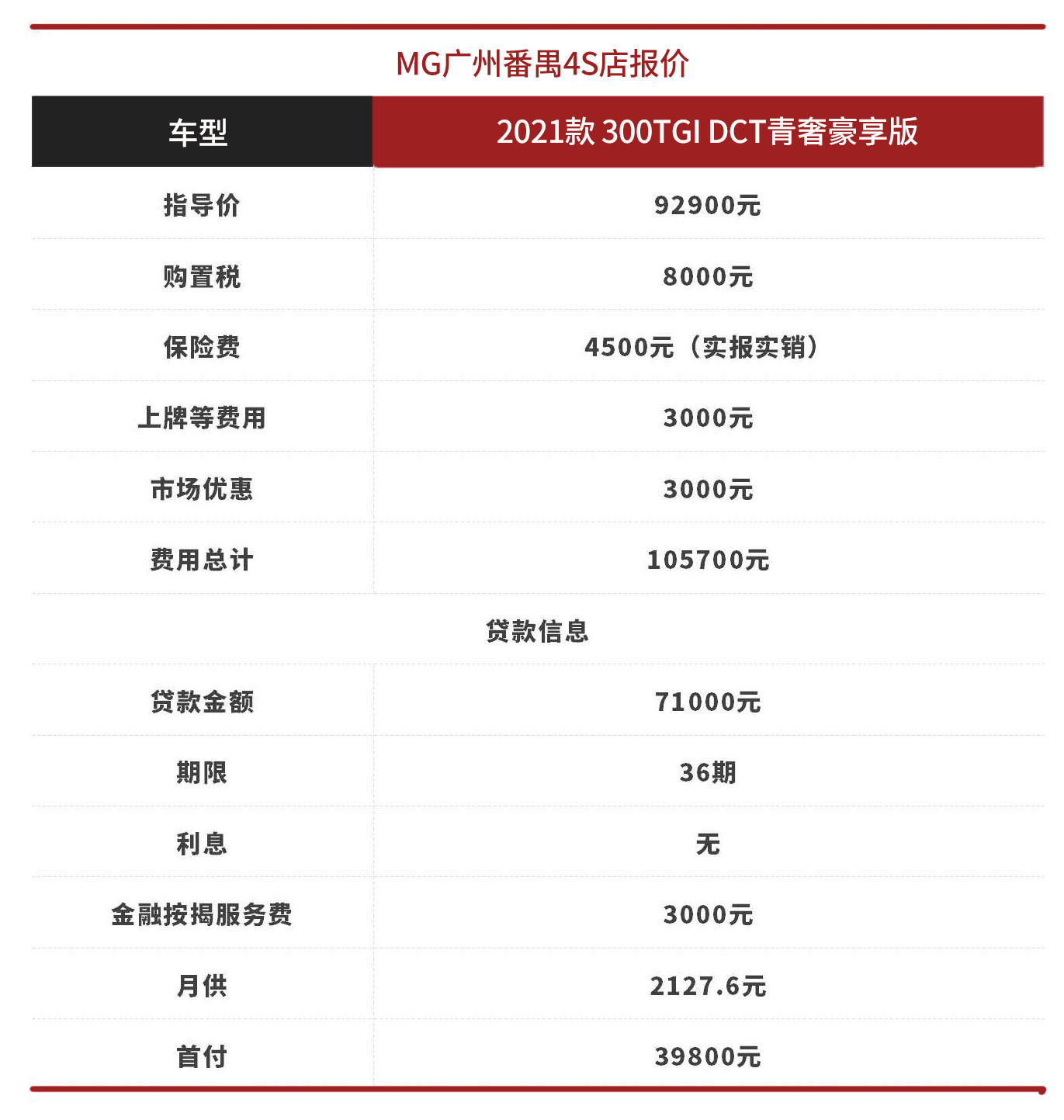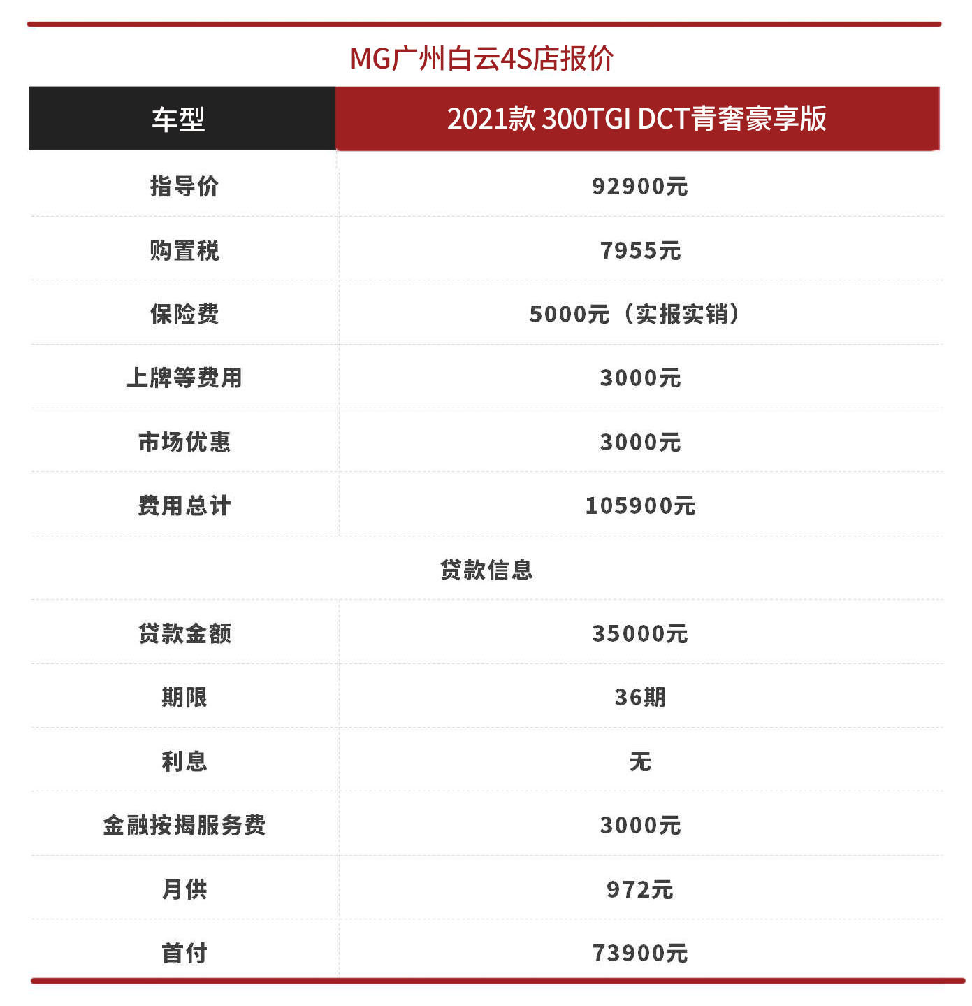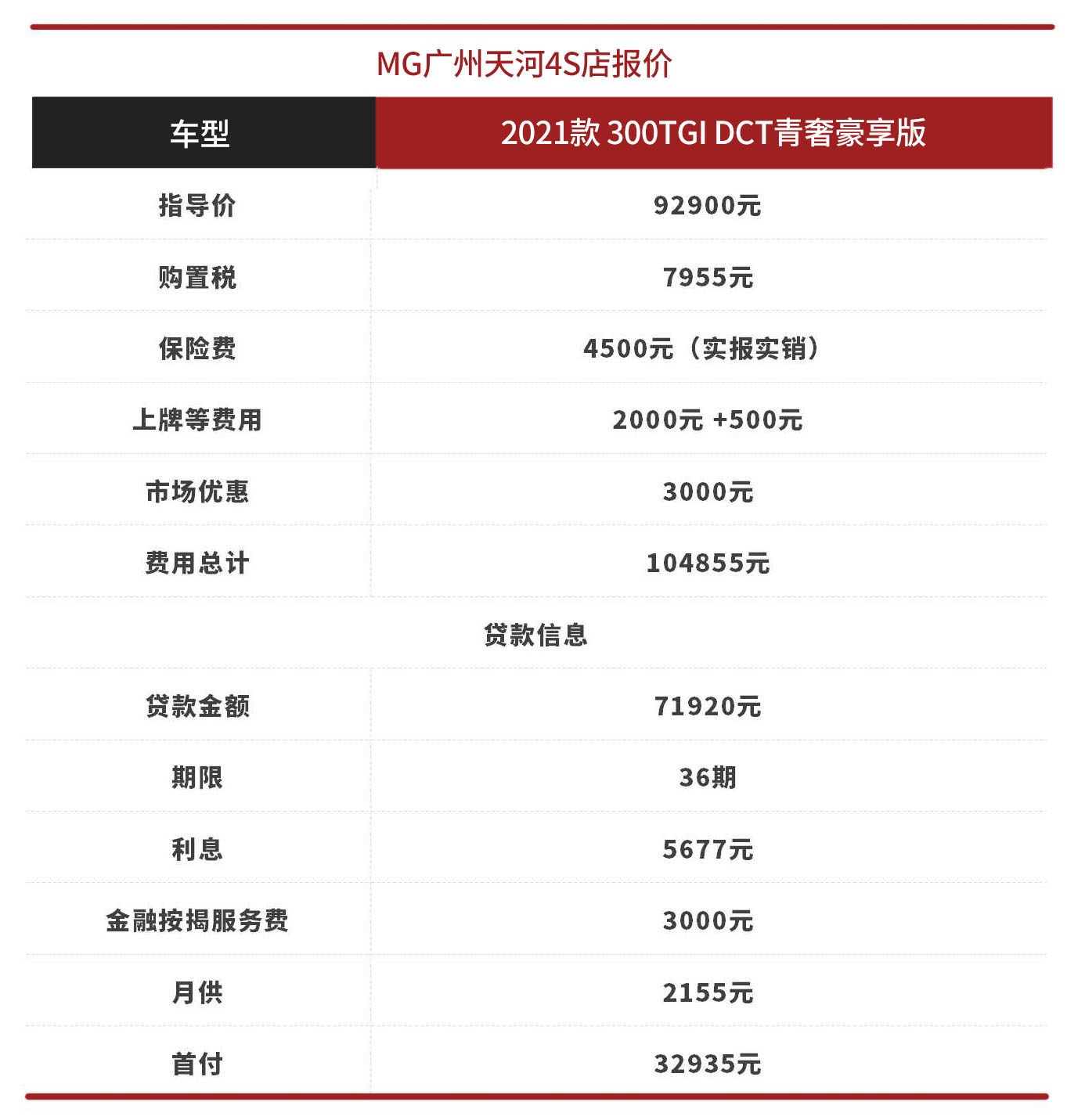 1.关于价格。MG5目前刚上市一个多月的时间,3家4S店的统一优惠均为3000元,目测短期内基本会维持住这个水平。加上本身车价并不贵,目前市场行情较好,因此长期看也不会出现较大的波动。全款购车总费用均在105000元左右,购置税和保险这些都是实报实销,最后结果也是一致的,差异主要看其它收费服务。