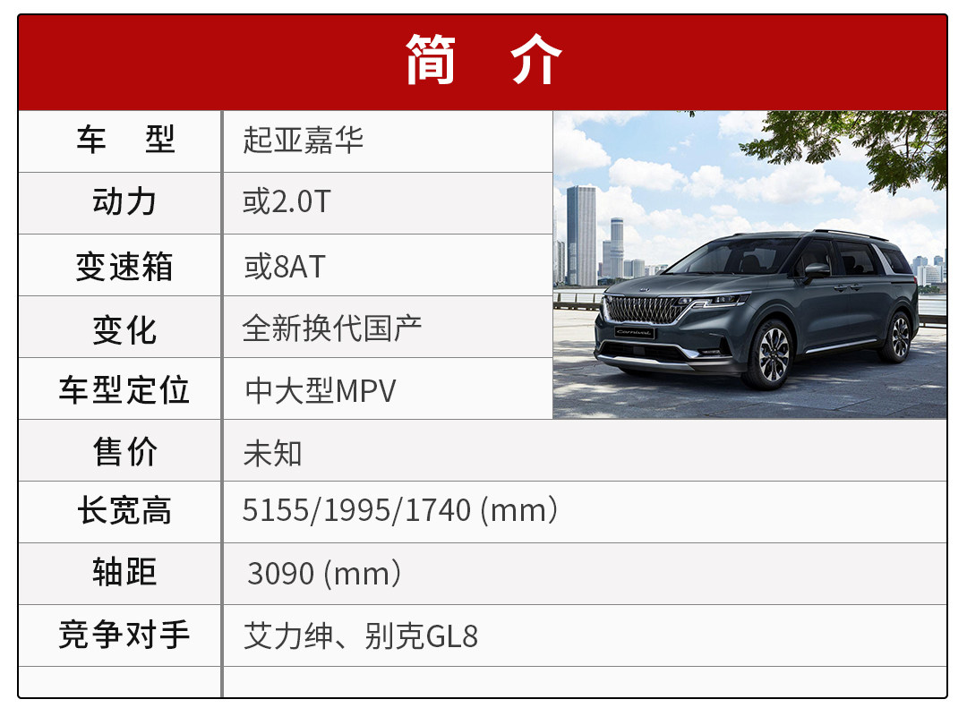 而说到产品亮点上,新车更是糅合了SUV车型的设计传统,与传统MPV车型作出了差异化。但也拥有多种座椅布局,空间灵活性强。在海外市场,嘉华配备3.5L V6大排量自吸发动机,在引入国产之后,相信将会配备(凯酷)K5那套2.0T+8AT的动力总成。嘉华国产之后,一方面会受到消费者购买信心的影响;另一方面MPV市场蛋糕没有传统轿车和SUV车型那么火,能不能在MPV市场成为搅局者,就看引入国内市场之后如何因地适宜了。