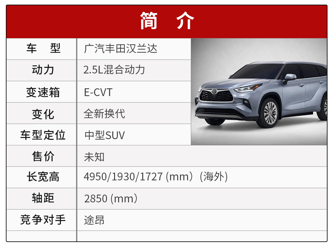 汉兰达一直是合资7座SUV市场的销量王者,就算是新旧产品更新之际的它也可以保持高销量的状态。全新一代美国市场上市已久,售价方面相比上一代有所提升。基于丰田GA-K打造的它,除了拥有3.5L V6大排量自吸发动机之外,还有2.5L混合动力系统,动力输出性能和油耗更有兼顾。进入国内市场的话。相信这套2.5L混合动力系统将是该车型的主要核心动力,像RAV4、亚洲龙等车型都在使用。