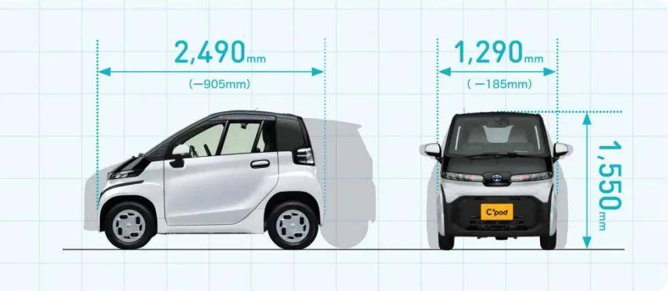 丰田C+pod体型比以小著称的K-Car还要小,这点从尺寸就可以窥见一二。几乎全日本的K-Car都是长3395mm,宽1495mm,高度1600mm-1900mm左右,而C+pod的长宽高是2490/1290/1550mm,轴距也才1780mm。