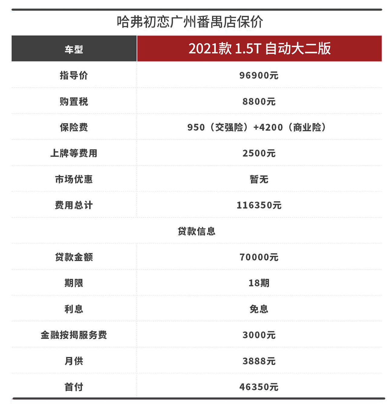 没有。因为目前哈弗初恋才刚上市没多久,基本上全国各地都是没有优惠的。就算你和销售顾问、经理软磨硬泡,也磨不出什么所以然来,想要优惠的话可能要等到年后才会有。所以,上面的价格除了个别地区的上牌费和贷款费用不同外,整体的落地价格全国地区基本上是趋于统一的。