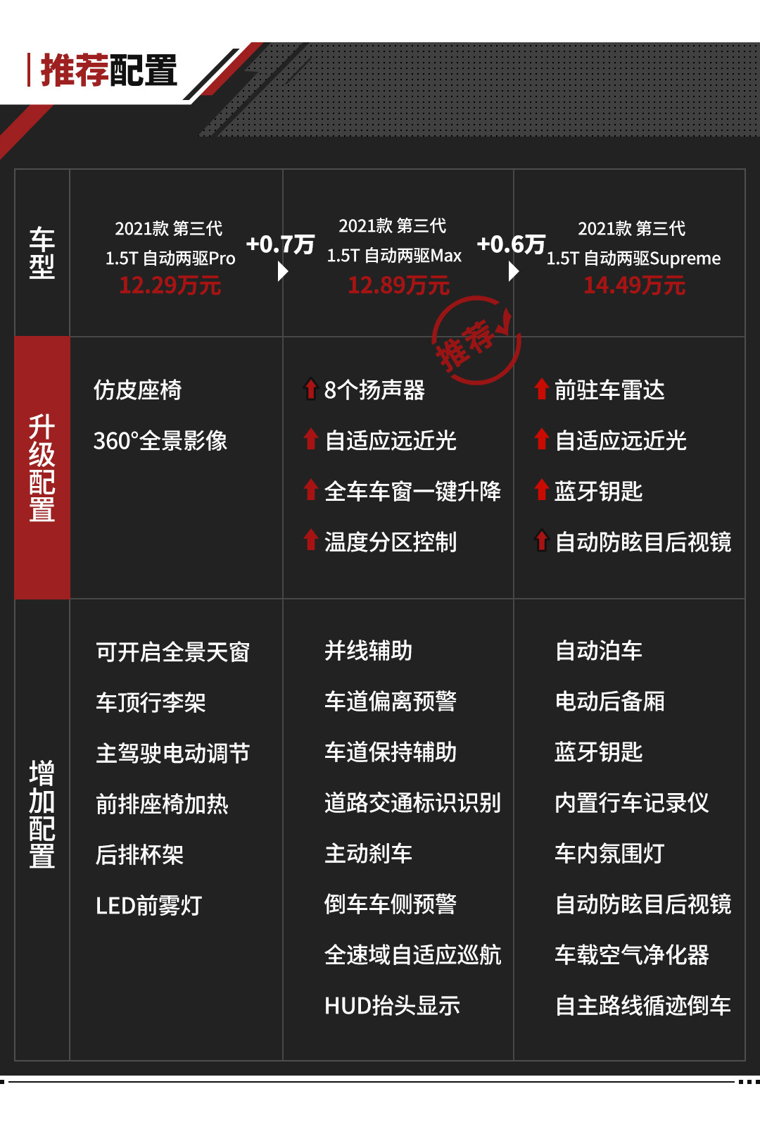 除了乞丐版之外,其实中配、高配和顶配均是非常热门的选择,尤其是12.89万元的Max版本性价比颇高,预算充足的一定要选这个!