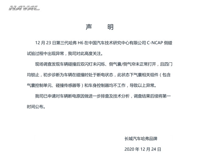 就像前段时间闹得沸沸扬扬的第三代哈弗H6侧面碰撞测试气囊打不开一样,引来不少吃瓜群众的冷嘲热讽。事后调查得出,车辆正处于系统部分软件功能升级阶段,整车处于断电状态,尾灯、双闪灯、侧气囊/侧气帘、车身稳定器均不工作。